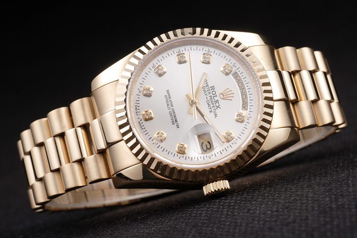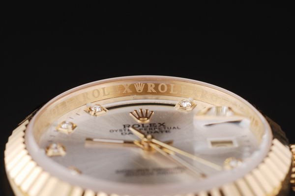Wstecz: Odprzyj 18 -karatowymi żółtym złotem z zieloną naklejką i oznaczenia Rolex