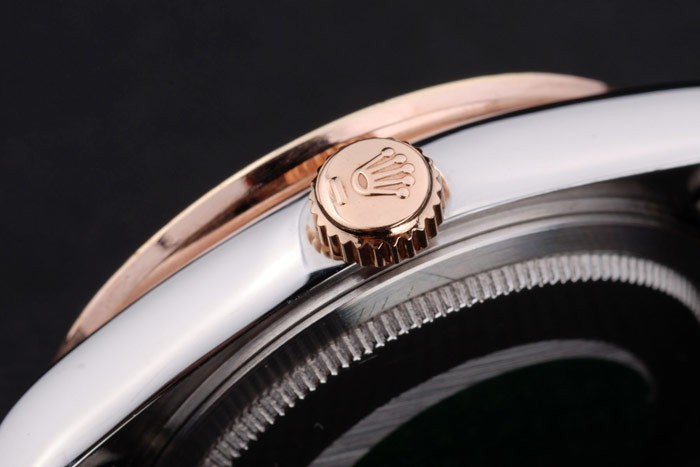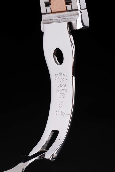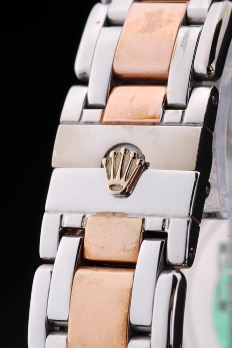 Bransoletka: Dwie stonowana fantazyjna bransoletka ogniwa w 18-karatowej stali nierdzewnej różowej złotej stali nierdzewnej i wypolerowanej stali nierdzewnej z Rolex Grawerowanie ukryte zapięcie wyświetlające logo Rolex