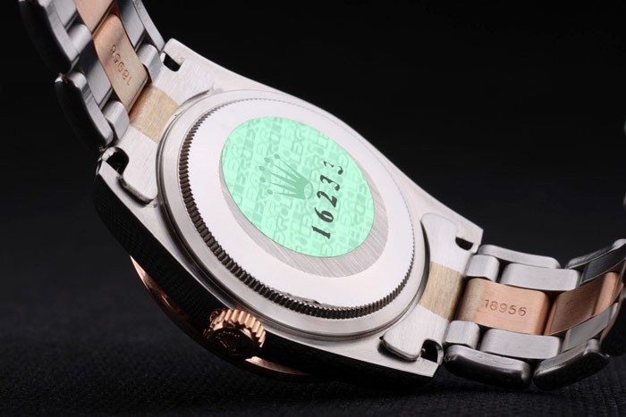 Powrót: obudowa ze stali nierdzewnej z tyłu z zielonym znaczkiem logo Rolex