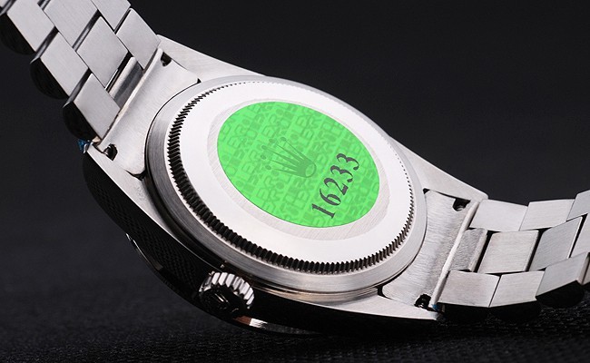 Powrót: obudowa ze stali nierdzewnej z tyłu z zielonym znaczkiem logo Rolex