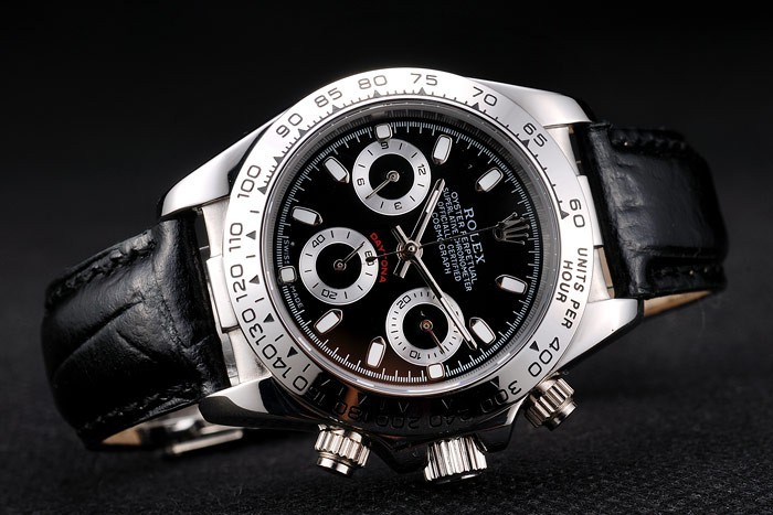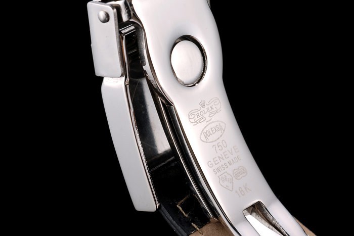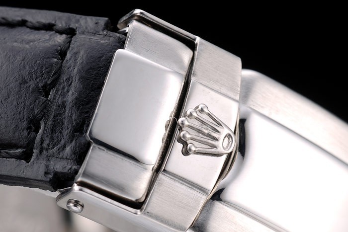 Bransoletka: Rolex Expossed Black Crocodile skórzany pasek z wygrawerowanymi zapięciem w rozmieszczenie ze stali nierdzewnej z logo Rolex na górze