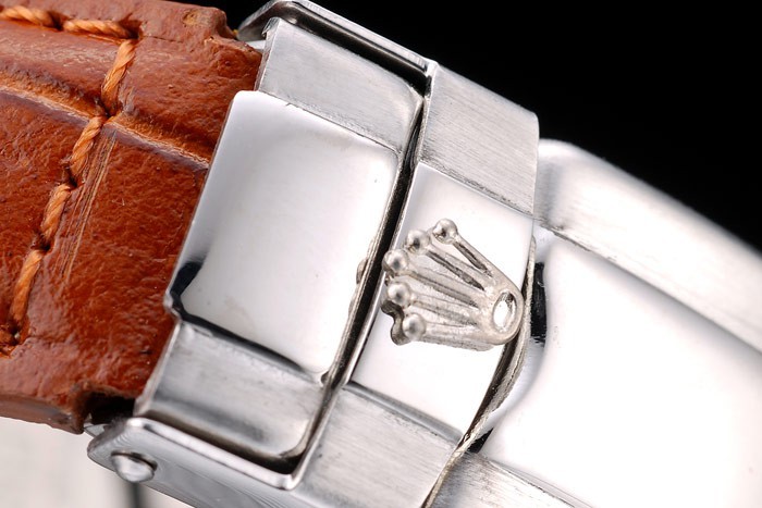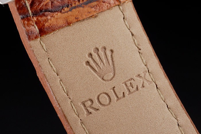 Bransoletka: Rolex wytłoczona brązowa skórzana krokodyl z grawerowanymi zapięciem w rozmieszczenie ze stali nierdzewnej z logo Rolex na górze