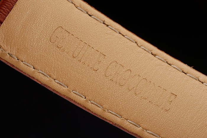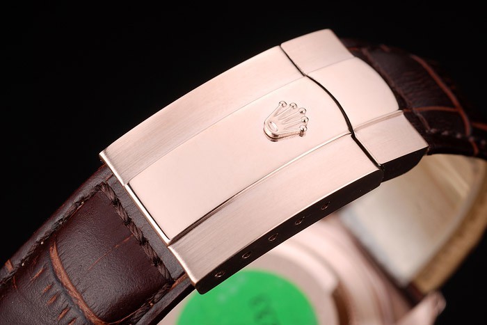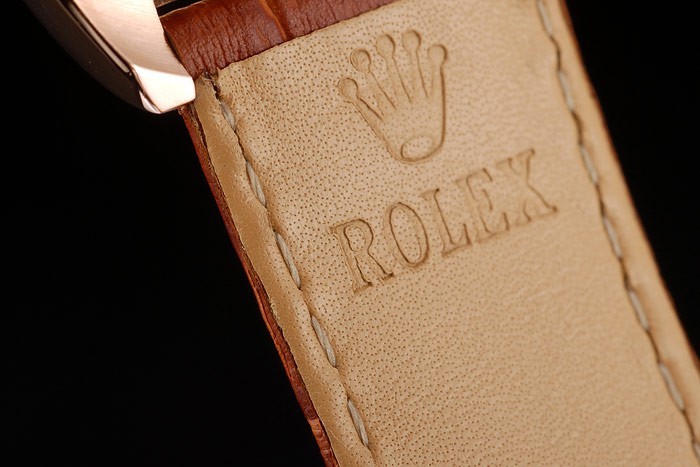 Bransoletka: Rolex wytłoczona brązowa skórzana krokodyl z wygrawerowanym zapięciem w rozmieszczenie róży z logo Rolex na górze
