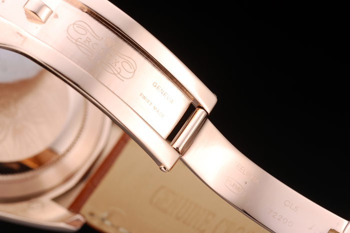 Korona: 18K-Rose-Gold Crown Crown z logo Rolex i dwie mniejsze korony przyciskowe na przyciskach na przyciskach na przyciśnięciu Każda z nich