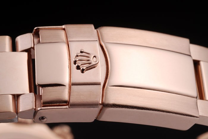 Korona: 18K Rose-Gold Crown z koroną w przecięciu Rose-Gold Crown z Crown Logo Rolex i mniejsze korony po obu stronach