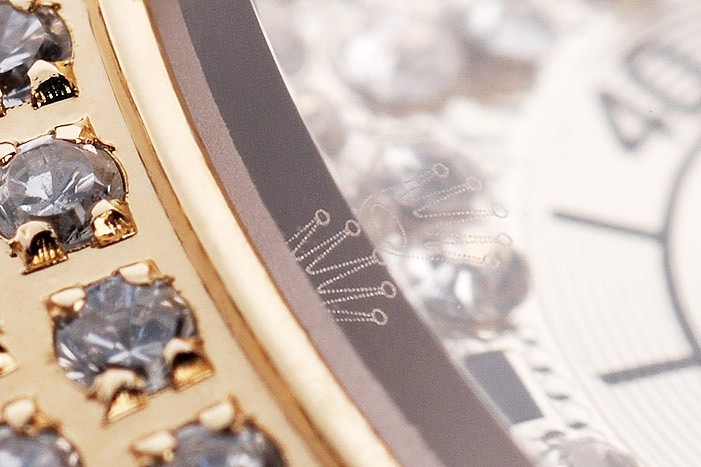 Korona: Złota stonowana korona z logo Rolex i dwie dodatkowe korony po obu stronach It