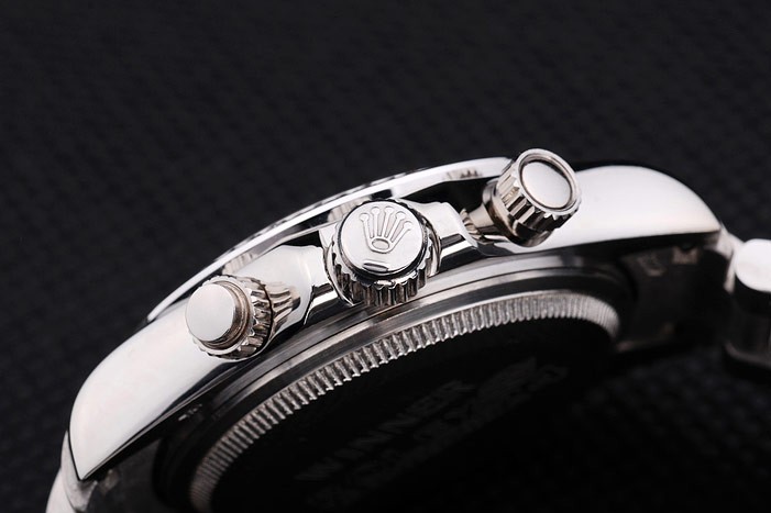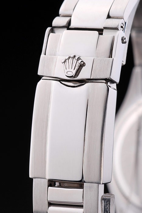 korona: polerowana stalowa stalowa korona z logo Rolex i dwie dodatkowe korony po obu stronach
