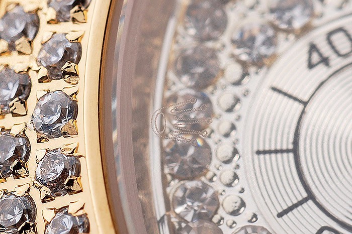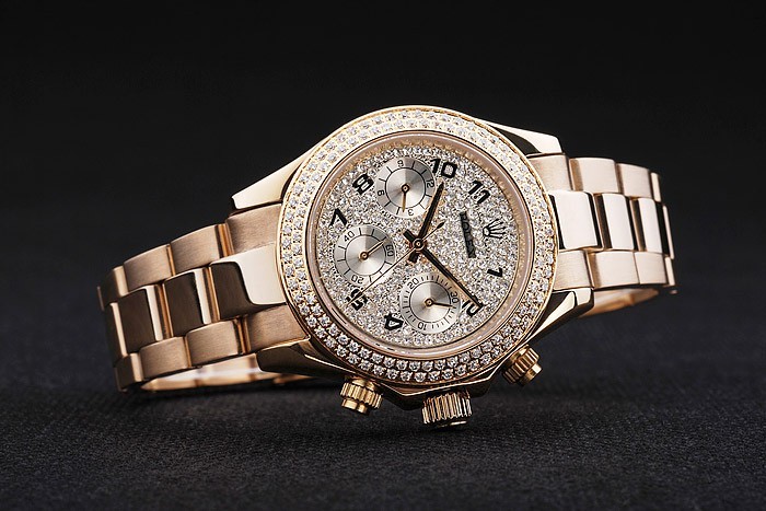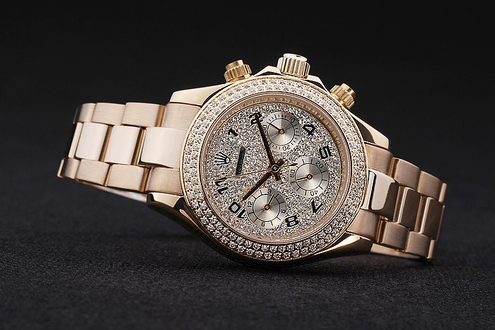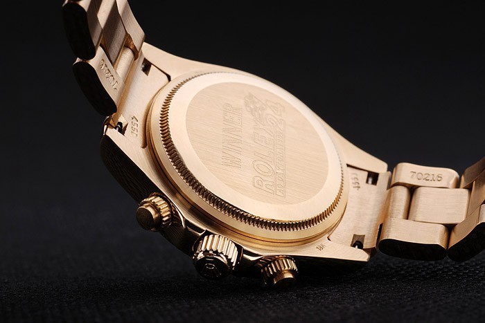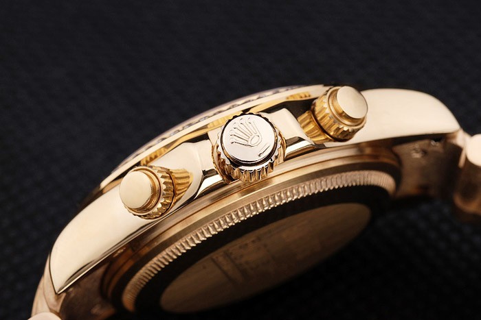 Korona: Złota stonowana korona z logo Rolex i dwie dodatkowe korony po obu stronach It