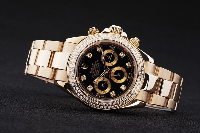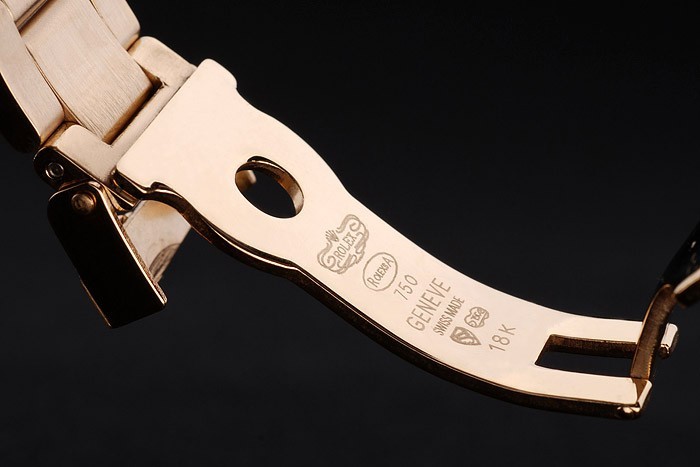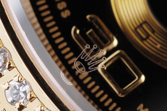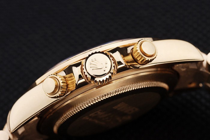 Korona: Złota stonowana korona z logo Rolex i dwie dodatkowe korony po obu stronach It