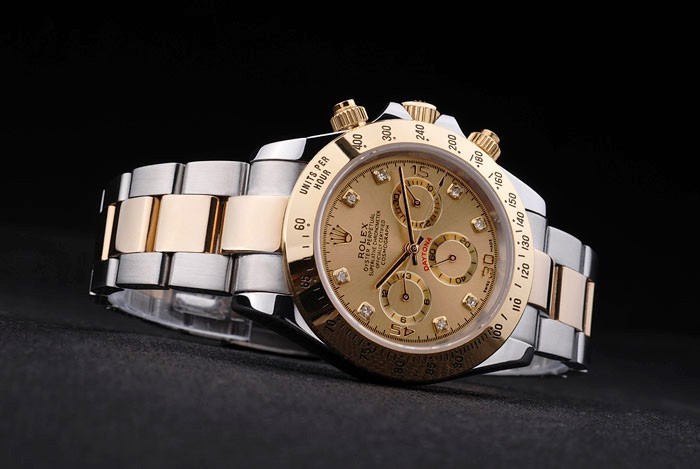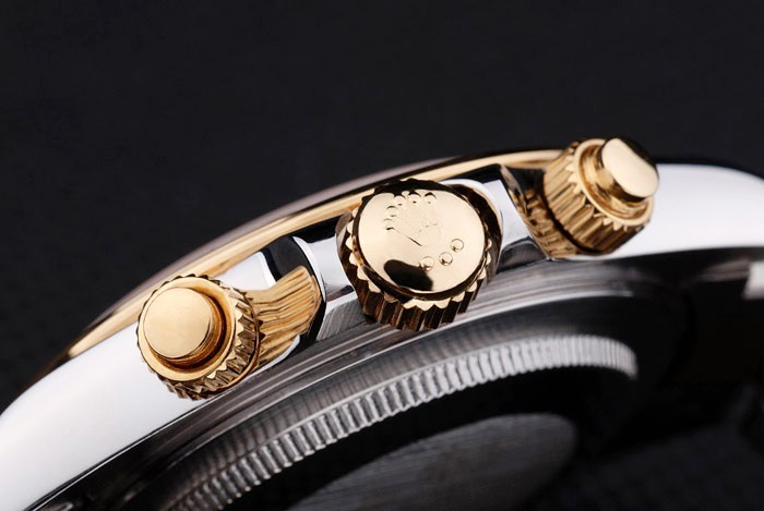 Korona: Złota stonowana korona z logo Rolex i dwie dodatkowe korony po obu stronach