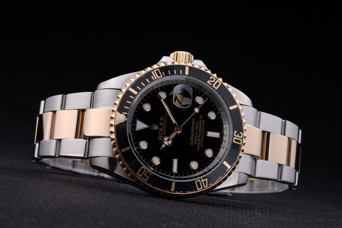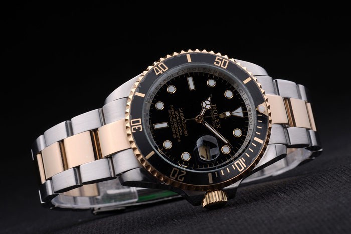 Bransoletka: Dwie stonowane szczotkowane i złotą stalową bransoletkę ze stali nierdzewnej z Rolex Grawerowanie fałdowania w zapięciu wyświetlając logo Rolex