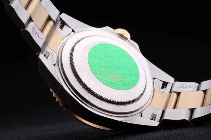 Powrót: obudowa ze stali nierdzewnej z tyłu z zielonym znaczkiem grawerującym Rolex