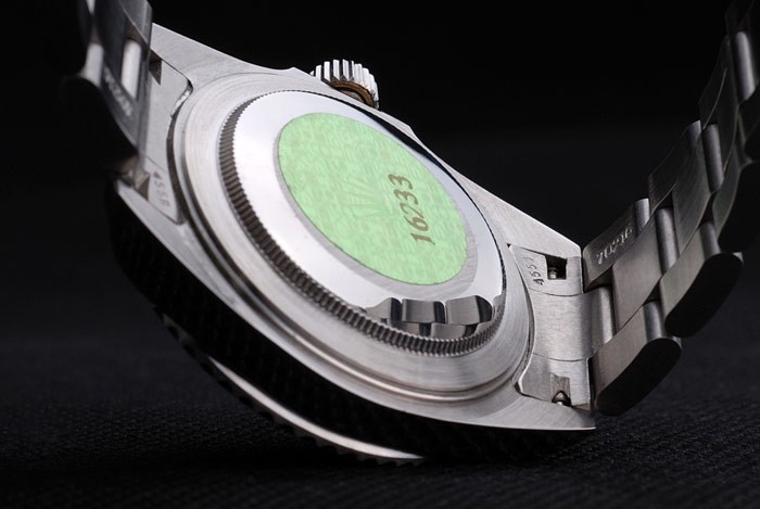 Powrót: obudowa ze stali nierdzewnej z tyłu z zielonym znaczkiem grawerującym Rolex
