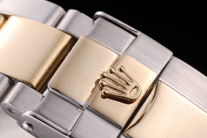 Bransoletka: Żółta Złota i szczotkowana bransoletka ze stali nierdzewnej z grawerowanym zapięciem w rozmieszczenie z logo Rolex na górze