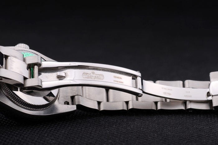 Powrót: obudowa ze stali nierdzewnej z tyłu z zielonym znaczkiem grawerującym Rolex