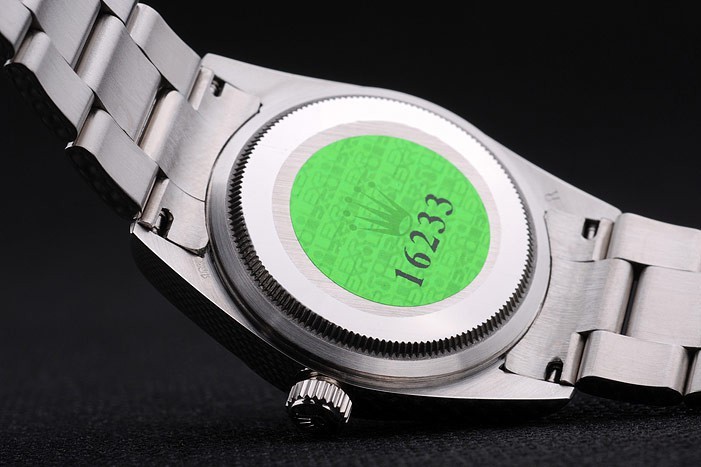Powrót: obudowa ze stali nierdzewnej z tyłu z zielonym znaczkiem grawerującym Rolex