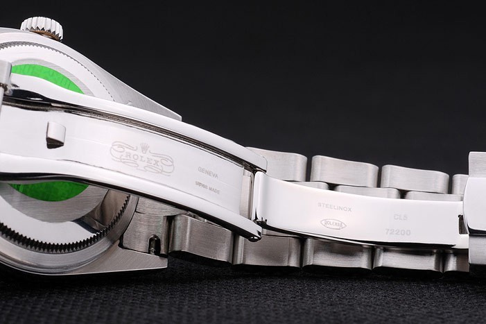 Bransoletka: Szczotkowana i wypolerowana bransoletka linku ze stali nierdzewnej z Rolex Grawerowanie z fałdowaniem w zapięciu wyświetlając logo Rolex