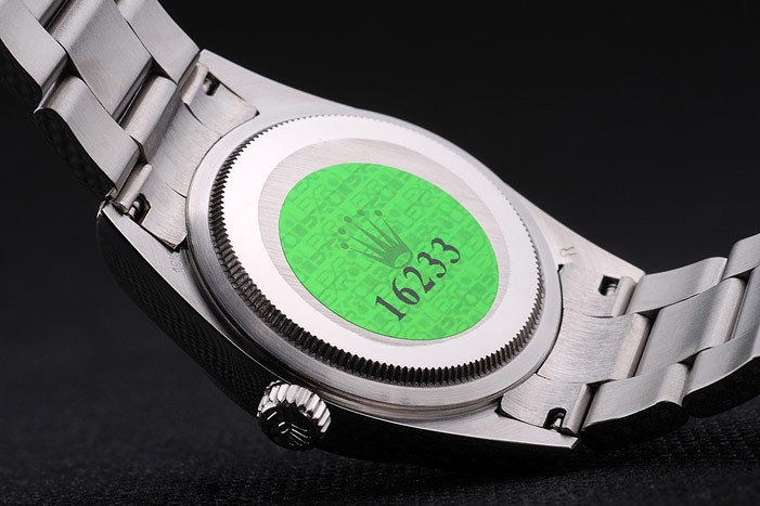 Powrót: obudowa ze stali nierdzewnej z tyłu z zielonym znaczkiem grawerującym Rolex