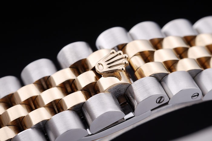 CZAS: CZĘŚCI Bransoletka ze stali nierdzewnej i żółtego złota z logo Rolex Hidden zapięcie