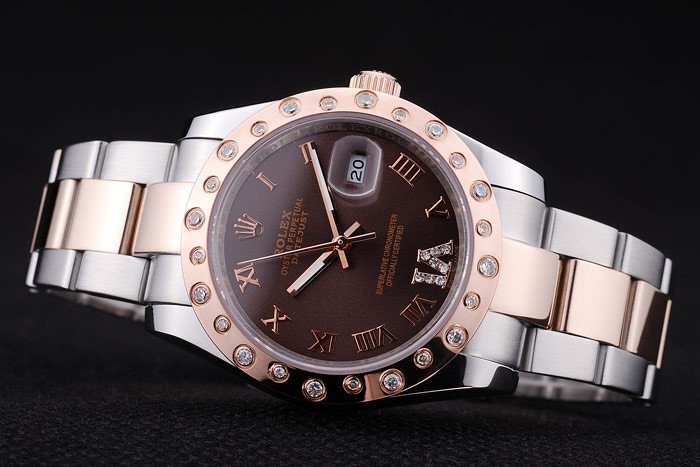 Bransoletka: szczotkowana Bransoletka ze stali nierdzewnej i róży-gold-gold z logo Rolex Wdrożenie Zapięcie