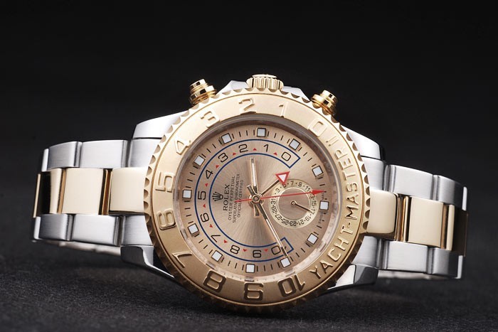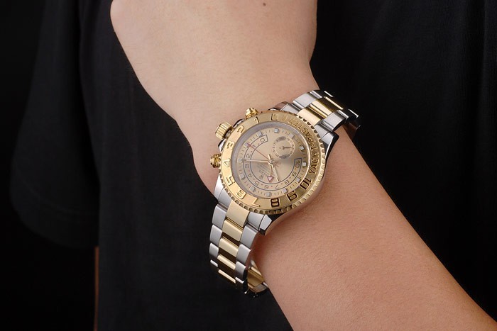 Bransoletka: Szczotkowana bransoletka ze stali nierdzewnej i żółtego złota z grawerowaniem Rolex we wnętrzu zapięcia rozmieszczenia i logo Rolex na górze