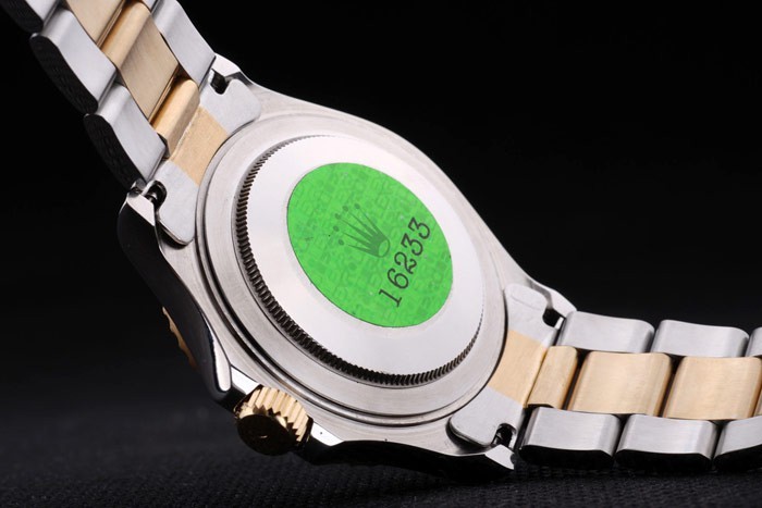 Powrót: obudowa ze stali nierdzewnej z tyłu z zielonym znaczkiem grawerującym Rolex