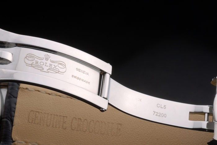 Bransoletka: Rolexex Wyciągnięte ciepło czarny skórzany pasek krokodyla z polerowanym logo Rolex Rolex Rzeźbione zapięcie
