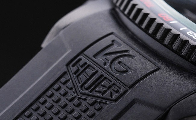 Bransoletka: Teksturowany czarny gumowy pasek z wytłoczoną cieplną i grawerowaną znacznikiem haczyka heuer zapięcie