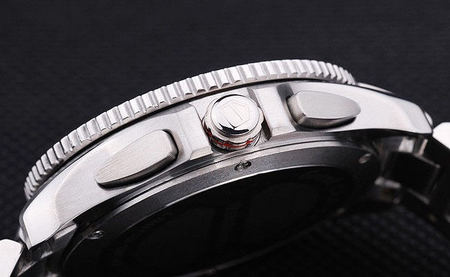 Korona: Wypolerowana korona przecięcia ze stali nierdzewnej z logo tag heuer plus dwie dodatkowe korony po obu stronach i jedna po przeciwległym górnym rogu