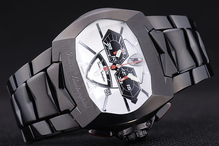 korona: jonowa stalowa stalowa korona z logo tonino lamborghini i dwie czerwone szkliwo z podłączonymi koronami przyciskowymi po obu stronach