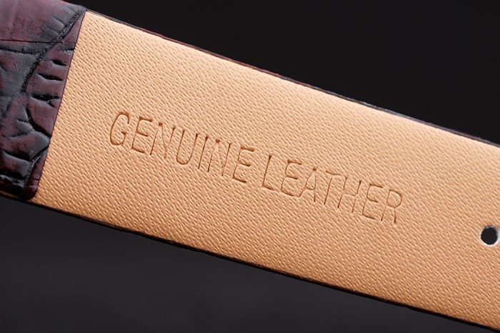 Bransoletka: bogaty maroon skórzany pasek krokodyla z napisem „Vacheron Constantin” i zapięcie klamry haczykowej