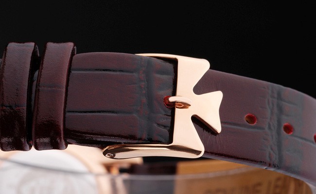 Bransoletka: Bogaty maroon skórzany pasek krokodyla z napisem „Vacheron Constantin” i klamra klamry haczykowej