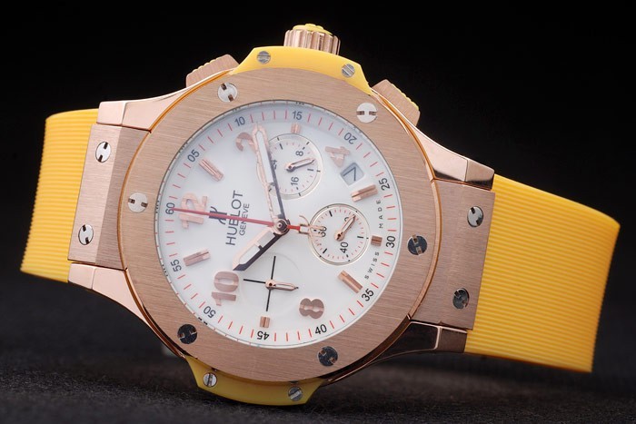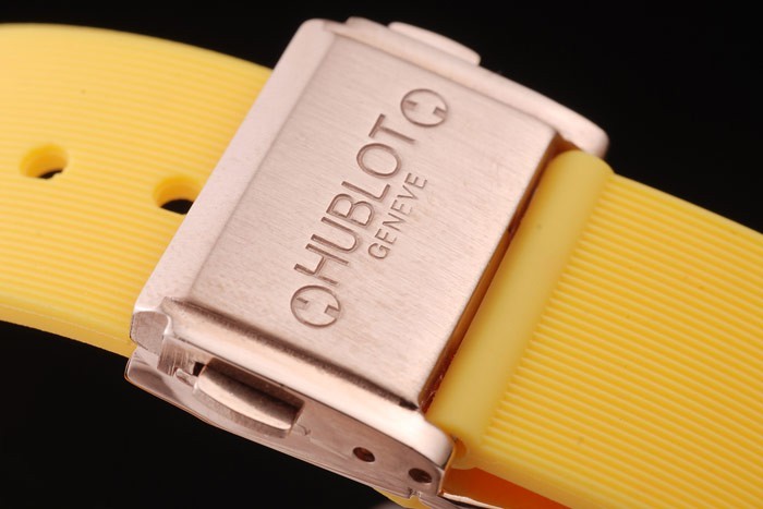 Bransoletka: Teksturowana żółta gumowa opaska z gniazdem do przycisku róży-przyciskowego i grawerowania Hublot