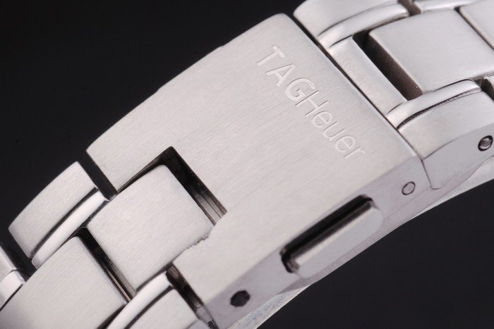 Ten zegarek ma kieliszek AR. Kolor twarzy pojawi się różne kolory w zależności od tego, jak światło spadają na Itbacku: wypolerowane stal ze stali nierdzewnej w tyłach z napisami tag heuer