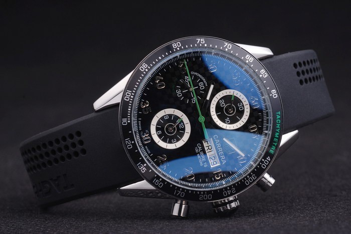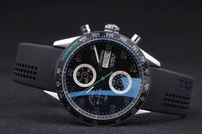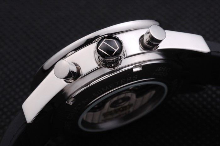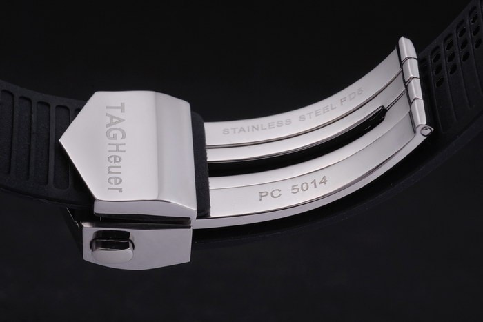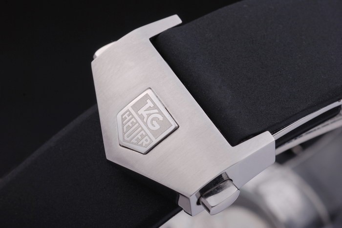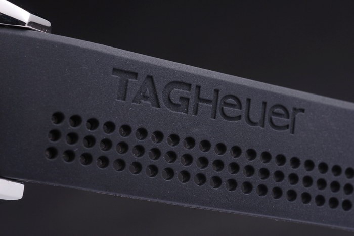 Bransoletka: czarny gumowy pasek z oznaczeniem heuer i szczotkowanym zapięciem stali nierdzewnej